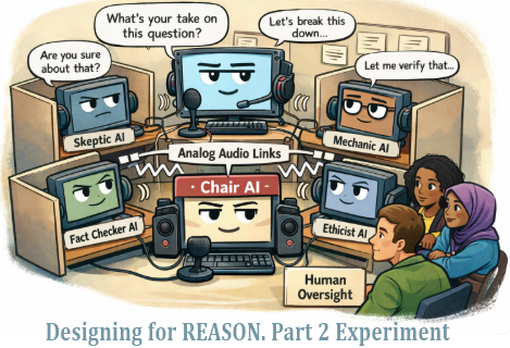 The analog link introduces mild friction: delay, loss, and mishearing. The hypothesis is that this friction forces clarification, restatement, and verification—reducing brittle consensus and confident error.
