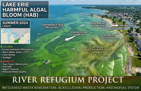Lake Erie’s western basin behaves like a natural growth reactor: shallow, warm, nutrient-loaded, predictable bloom cycles.